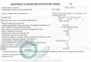 Паспорт бетону – базовий технічний документ на будівельному майданчику. У ньому відображаються характеристики бетонної суміші. Цей матеріал видається виключно виробником розчину.